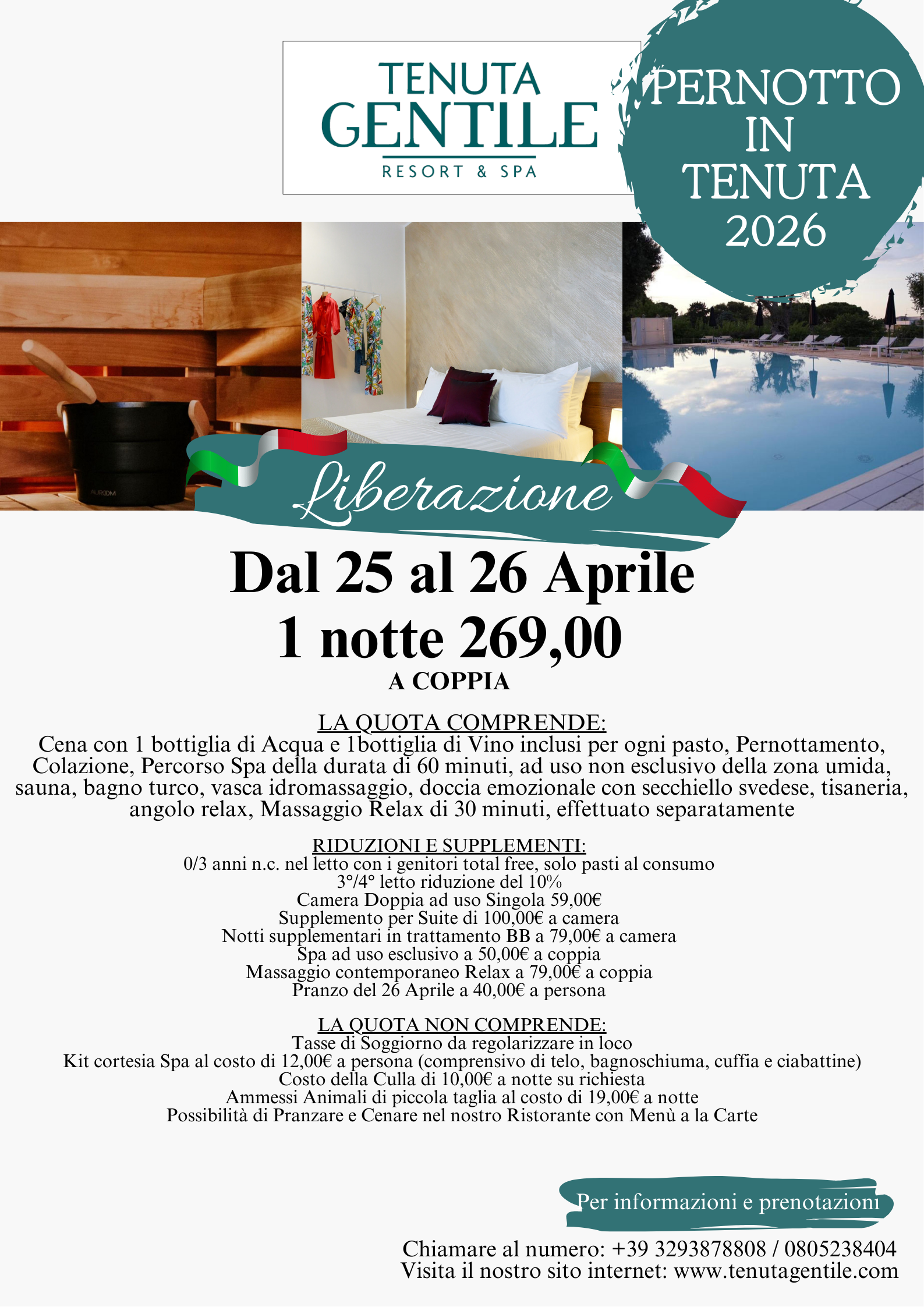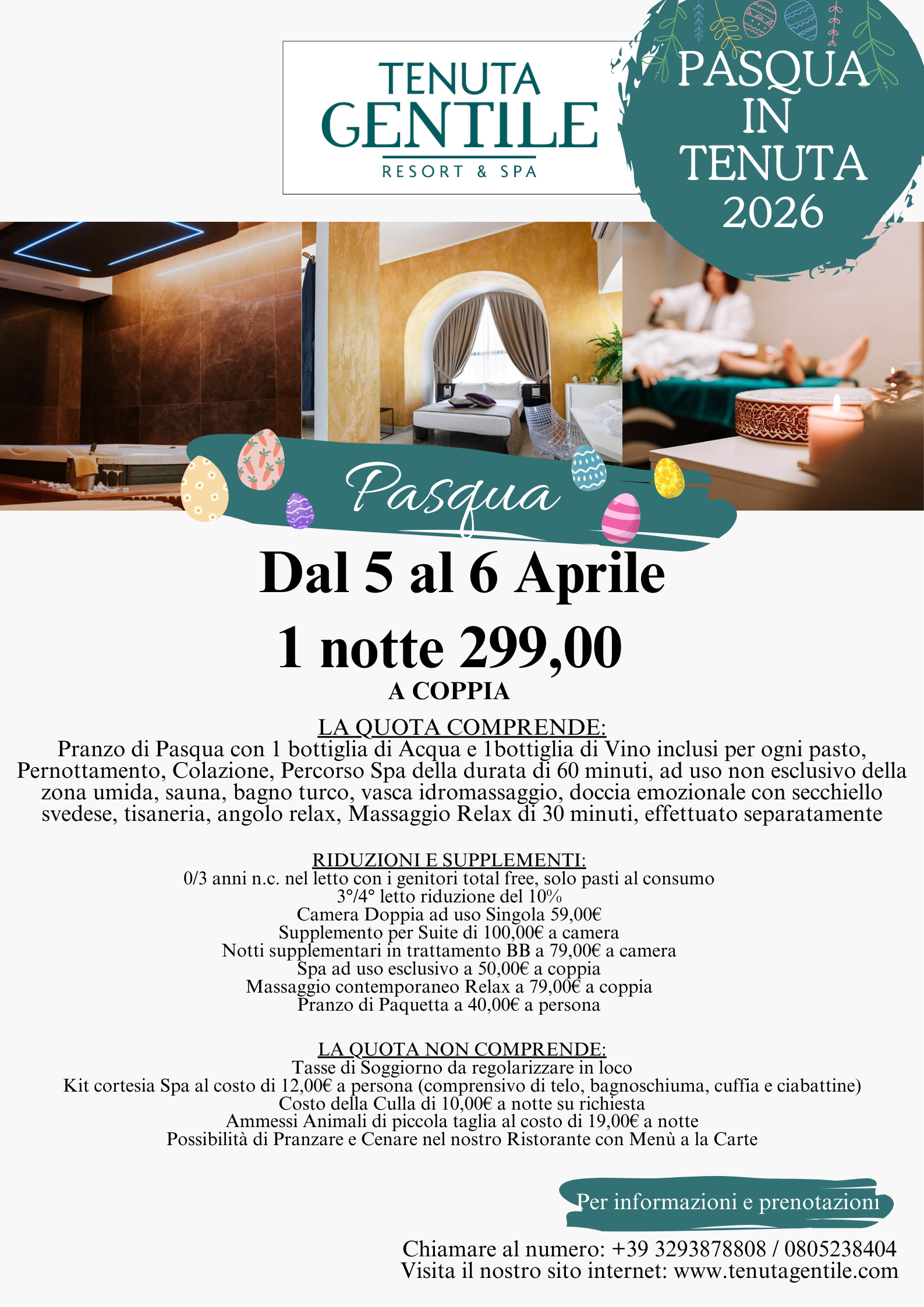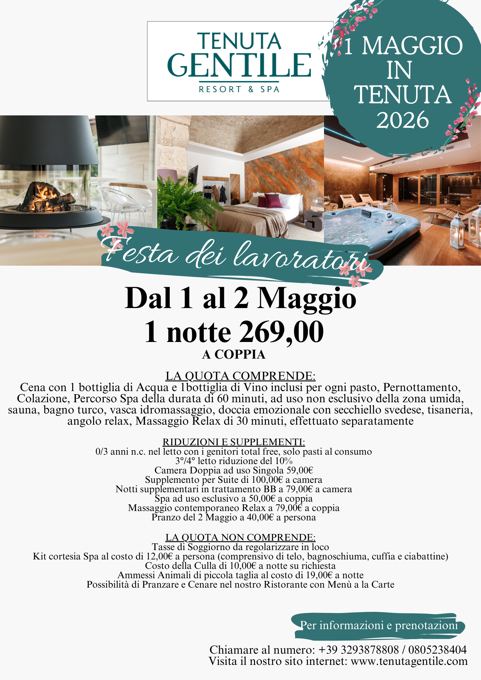 Ingrandisci immagine PACCHETTI PER FESTIVITA’ 2026 francesco2026-01-12T15:44:59+01:00Eventi, Pacchetti| FacebookWhatsAppEmail Post correlati PACCHETTI BENESSERE 2025 Estate Gentile: Sotto un cielo stellato